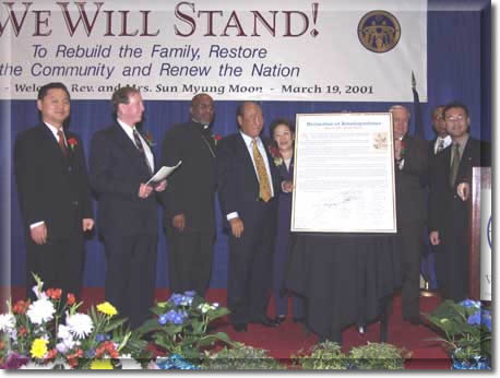 in attendance, including Father and Mother Moon. It reads in part