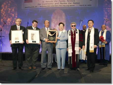 an interfaith award was given to Father Moon on behalf of the Forum